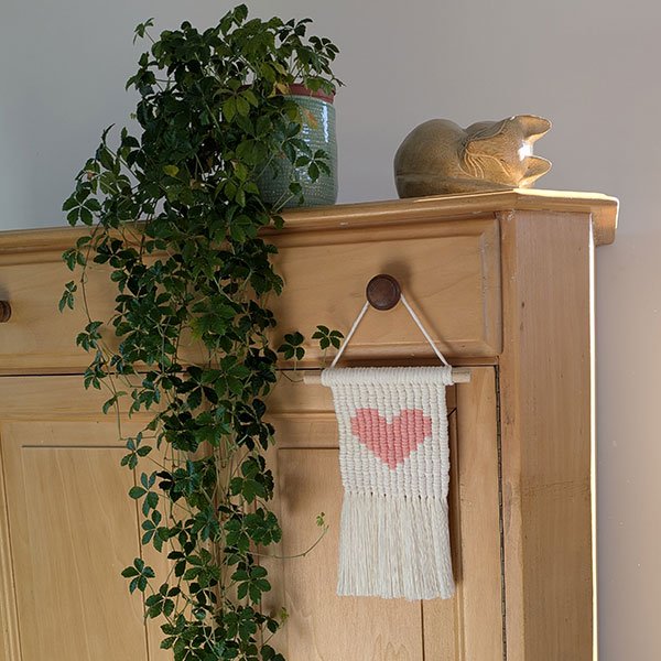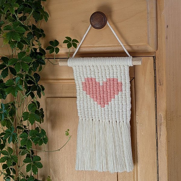 Cette petite tenture murale est constituée de coton peigné écru et rose